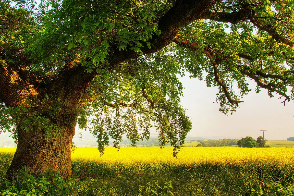 Affiche Arbre majestueux près d'un champ doré Non f15283