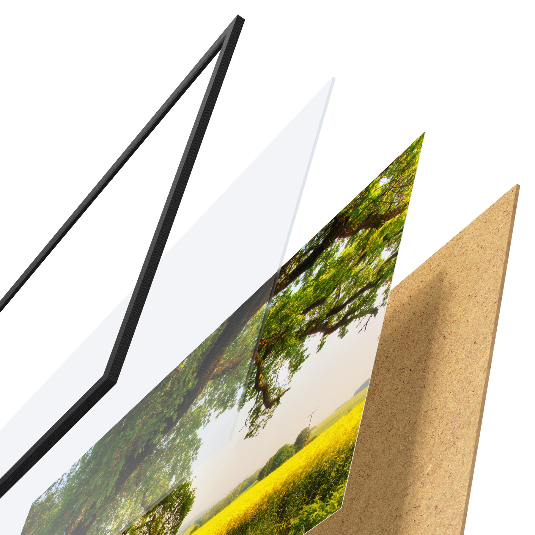Le poster se compose d'un cadre, d'un plexiglas, d'une image imprimée et d'un support en aggloméré. Le poster peut être immédiatement accroché au mur grâce aux fixations au dos.