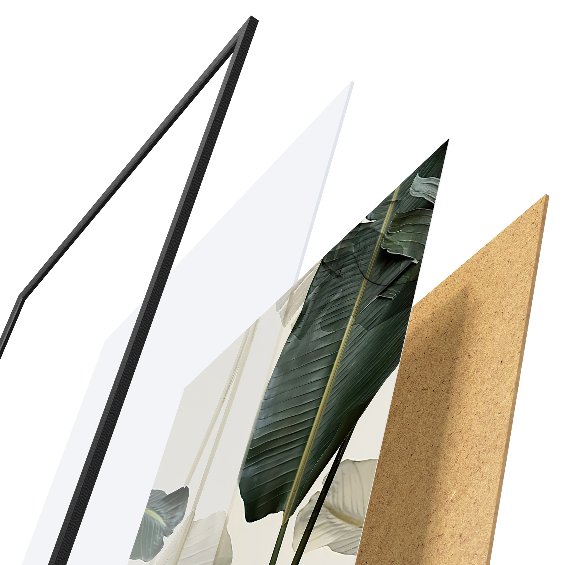 Le poster se compose d'un cadre, d'un plexiglas, d'une image imprimée et d'un support en aggloméré. Le poster peut être immédiatement accroché au mur grâce aux fixations au dos.