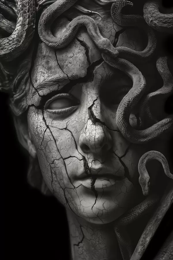 Affiche Sculpture gorgone Méduse noire et blanche f26128