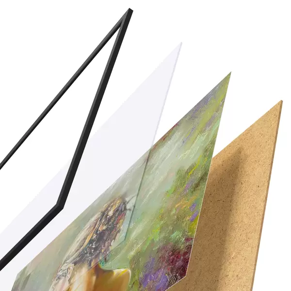 Le poster se compose d'un cadre, d'un plexiglas, d'une image imprimée et d'un support en aggloméré. Le poster peut être immédiatement accroché au mur grâce aux fixations au dos.