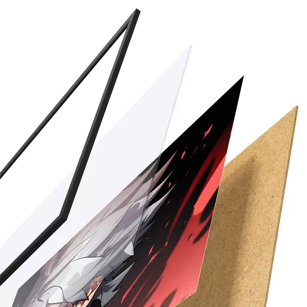Le poster se compose d'un cadre, d'un plexiglas, d'une image imprimée et d'un support en aggloméré. Le poster peut être immédiatement accroché au mur grâce aux fixations au dos.