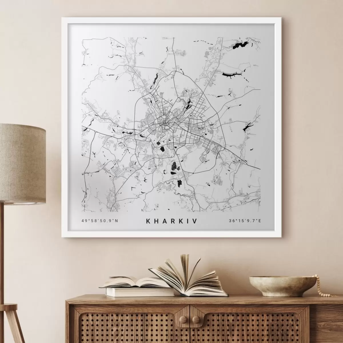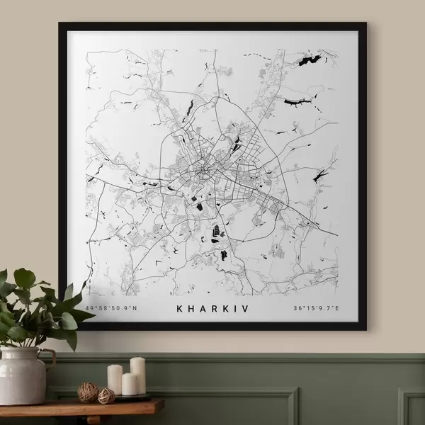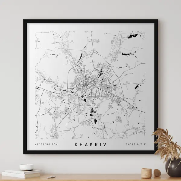 Affiche Carte minimaliste de la ville de Kharkov en Ukraine f31429v1
