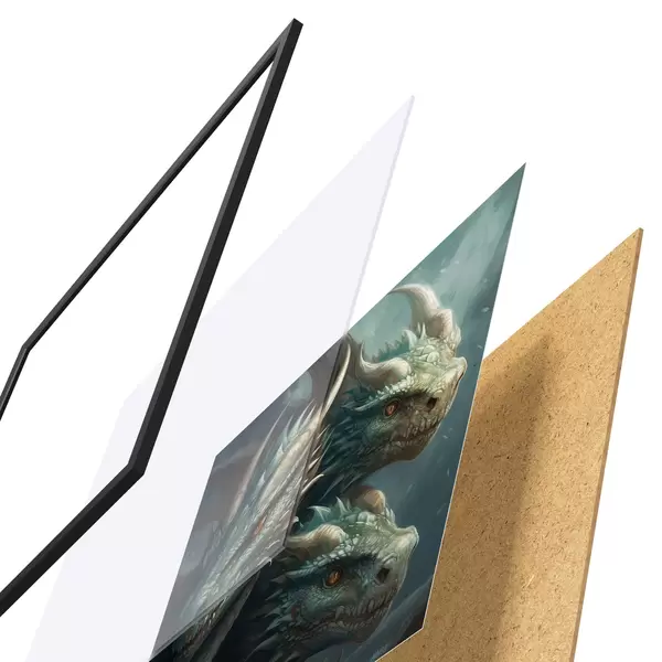 Le poster se compose d'un cadre, d'un plexiglas, d'une image imprimée et d'un support en aggloméré. Le poster peut être immédiatement accroché au mur grâce aux fixations au dos.