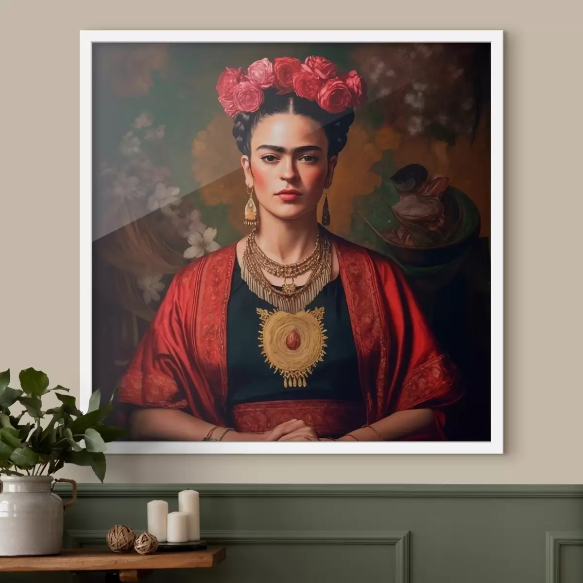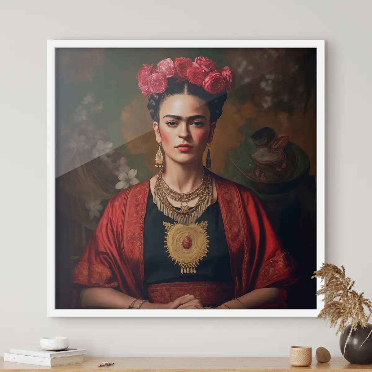 Affiche Frida Kahlo dans une robe rouge Non f32865
