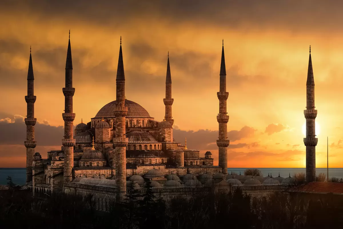 Affiche Mosquée bleue au coucher du soleil, Istanbul f33029