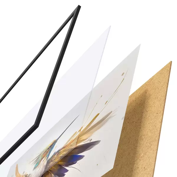 Le poster se compose d'un cadre, d'un plexiglas, d'une image imprimée et d'un support en aggloméré. Le poster peut être immédiatement accroché au mur grâce aux fixations au dos.