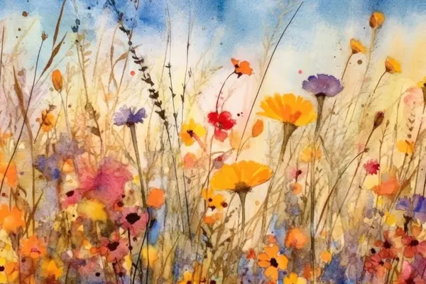 Affiche Fleurs colorées dans un champ ensoleillé Non f33634