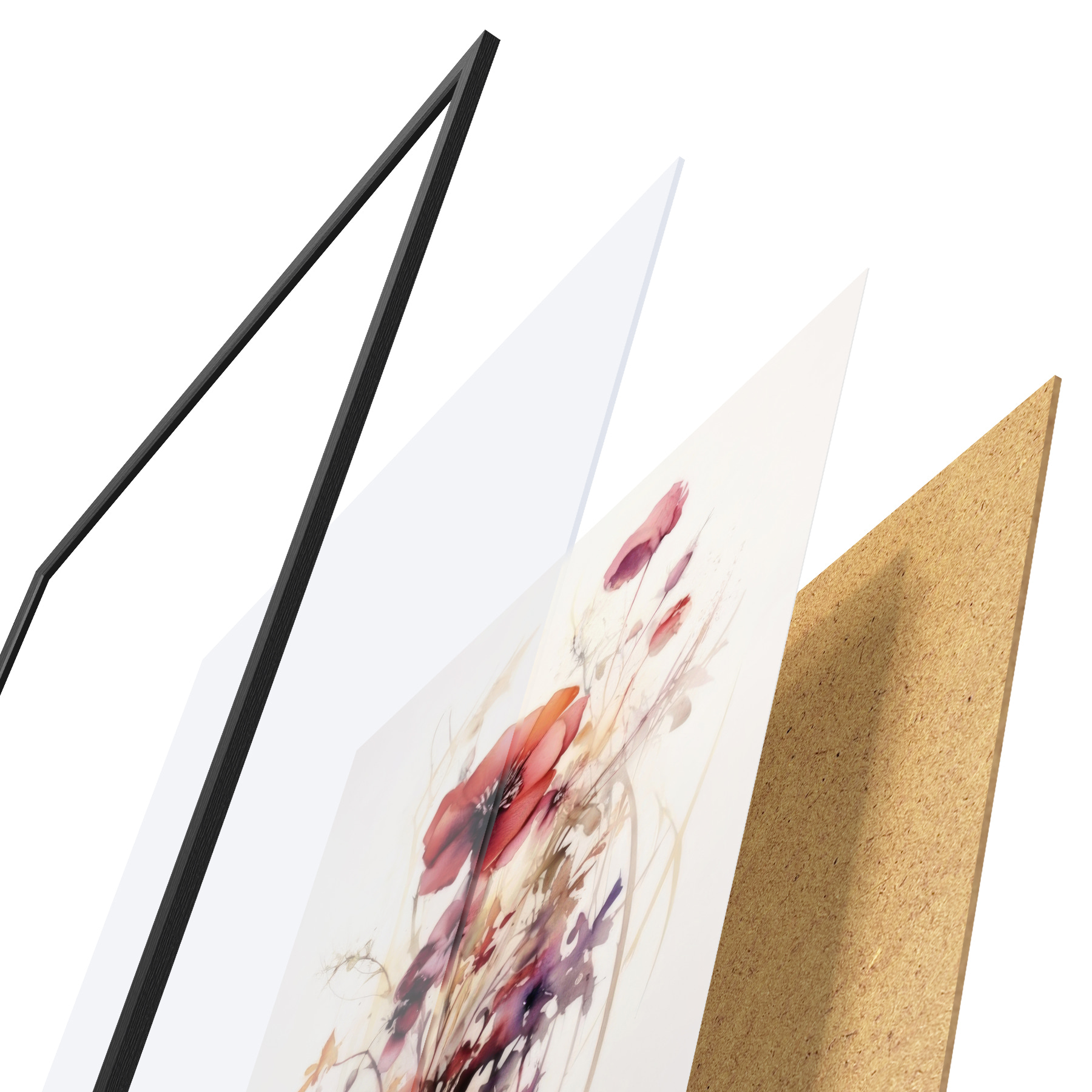 Le poster se compose d'un cadre, d'un plexiglas, d'une image imprimée et d'un support en aggloméré. Le poster peut être immédiatement accroché au mur grâce aux fixations au dos.