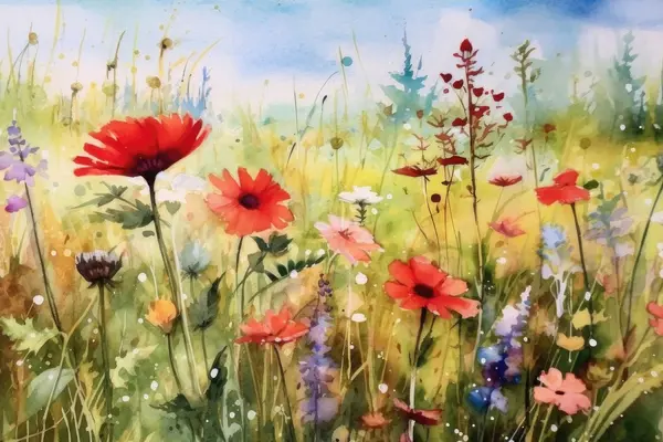 Affiche Des fleurs éclatantes dans une prairie ensoleillée Non f33680