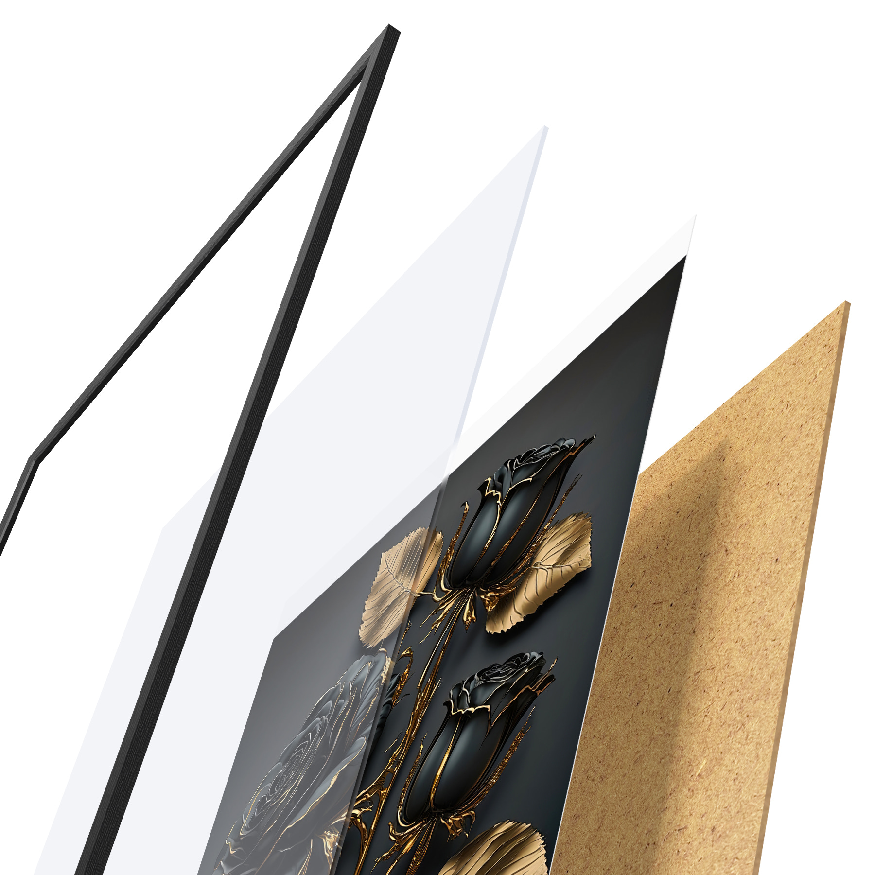 Le poster se compose d'un cadre, d'un plexiglas, d'une image imprimée et d'un support en aggloméré. Le poster peut être immédiatement accroché au mur grâce aux fixations au dos.
