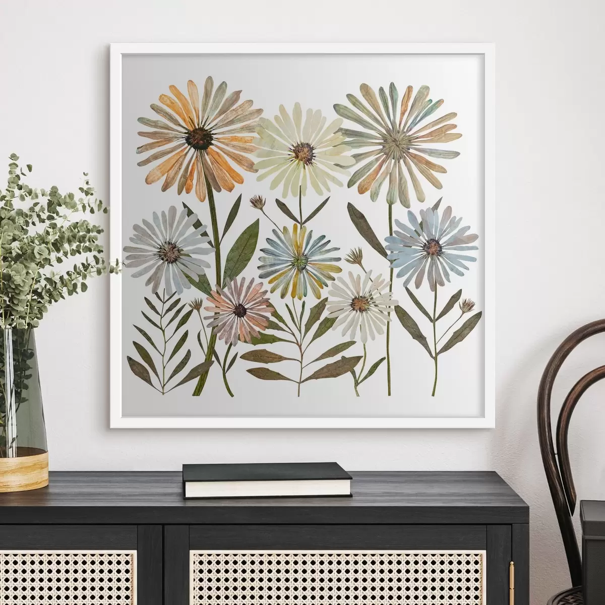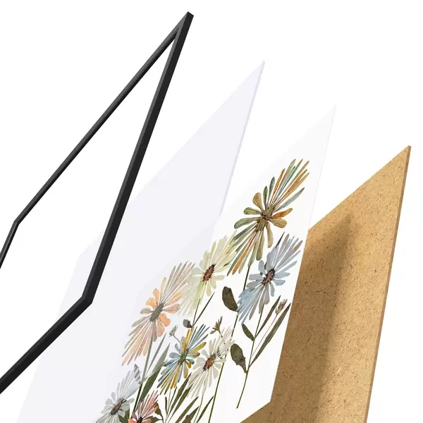 Le poster se compose d'un cadre, d'un plexiglas, d'une image imprimée et d'un support en aggloméré. Le poster peut être immédiatement accroché au mur grâce aux fixations au dos.