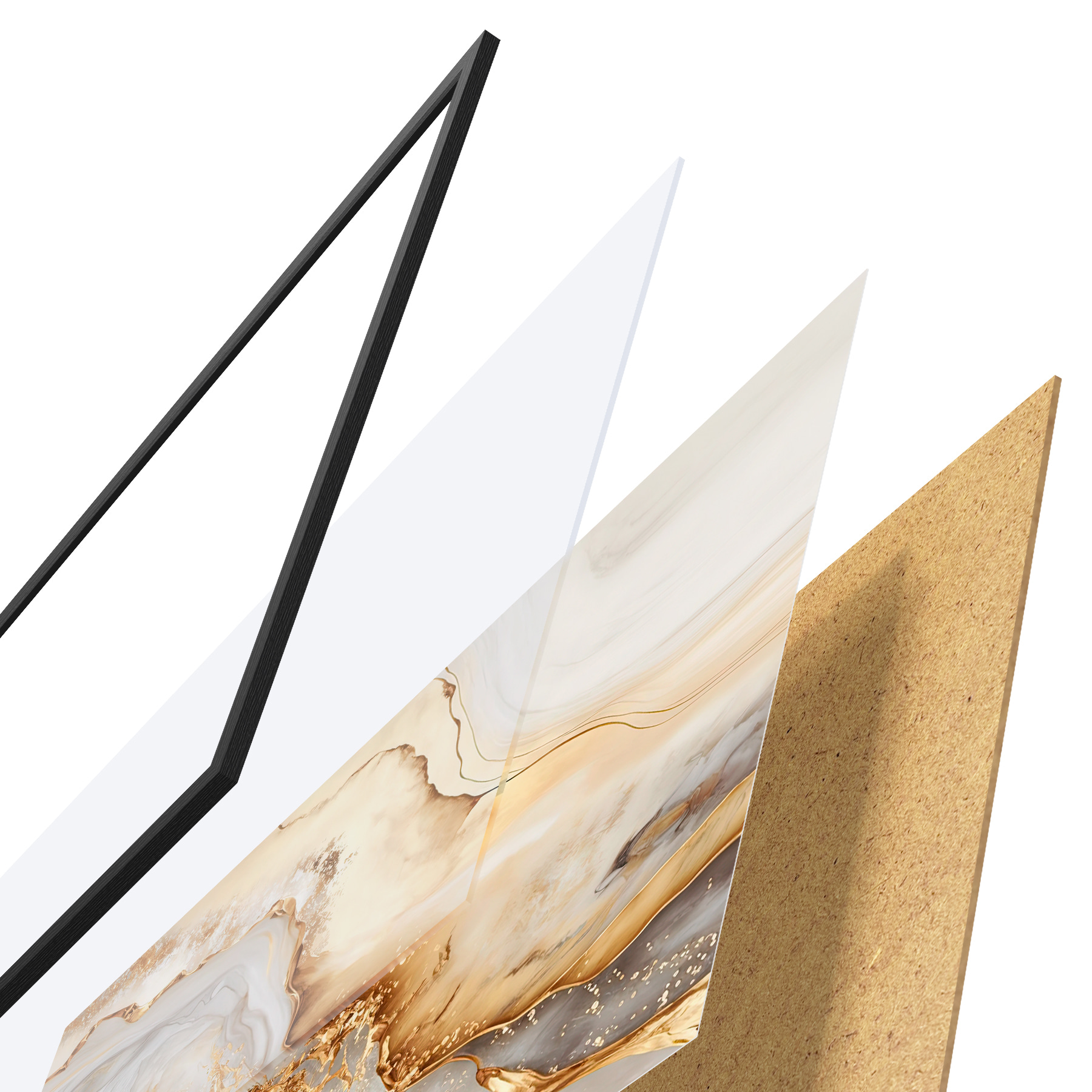 Le poster se compose d'un cadre, d'un plexiglas, d'une image imprimée et d'un support en aggloméré. Le poster peut être immédiatement accroché au mur grâce aux fixations au dos.