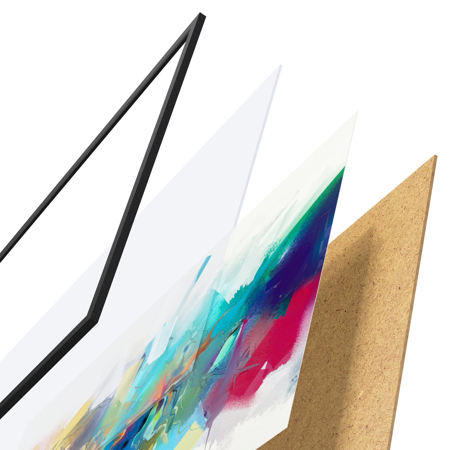 Le poster se compose d'un cadre, d'un plexiglas, d'une image imprimée et d'un support en aggloméré. Le poster peut être immédiatement accroché au mur grâce aux fixations au dos.