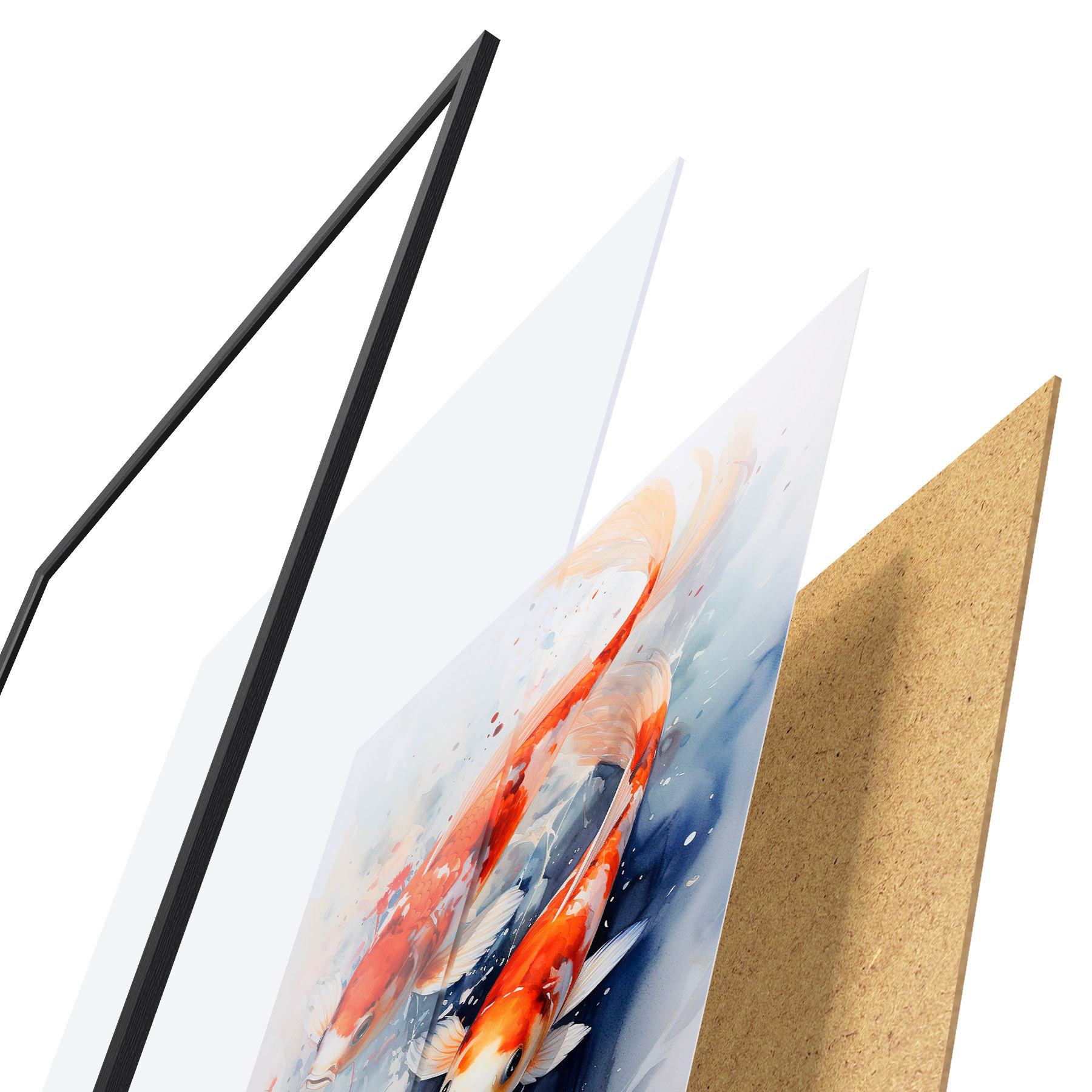 Le poster se compose d'un cadre, d'un plexiglas, d'une image imprimée et d'un support en aggloméré. Le poster peut être immédiatement accroché au mur grâce aux fixations au dos.