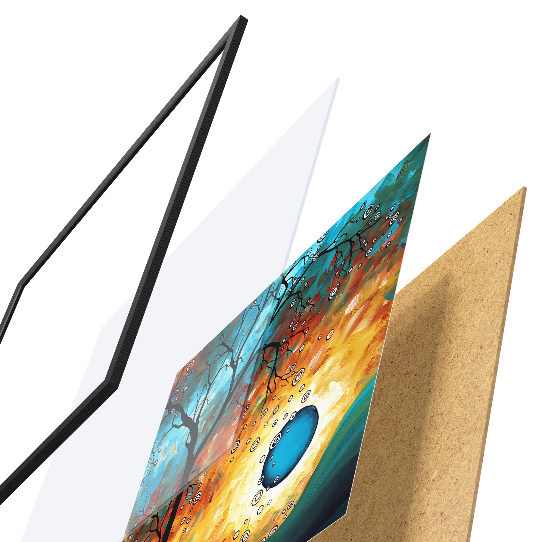 Le poster se compose d'un cadre, d'un plexiglas, d'une image imprimée et d'un support en aggloméré. Le poster peut être immédiatement accroché au mur grâce aux fixations au dos.