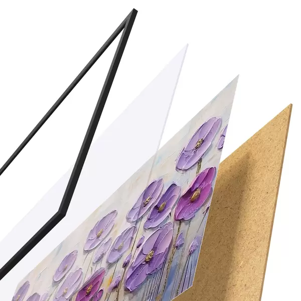 Le poster se compose d'un cadre, d'un plexiglas, d'une image imprimée et d'un support en aggloméré. Le poster peut être immédiatement accroché au mur grâce aux fixations au dos.