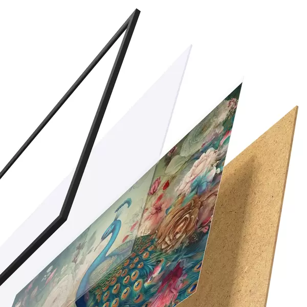 Le poster se compose d'un cadre, d'un plexiglas, d'une image imprimée et d'un support en aggloméré. Le poster peut être immédiatement accroché au mur grâce aux fixations au dos.