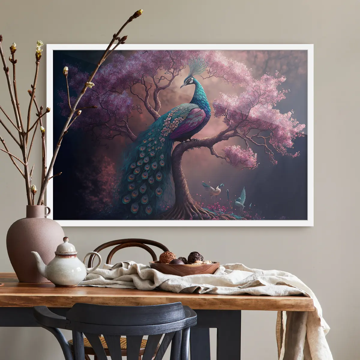 Affiche Paon parmi les cerisiers en fleurs f34875