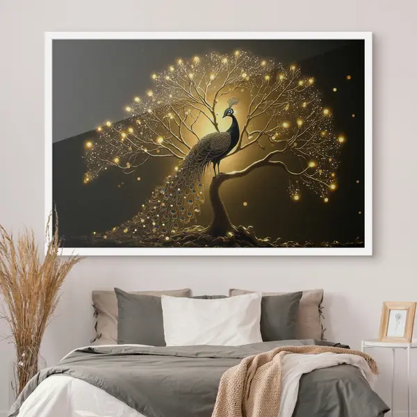 Affiche Un magnifique paon sur fond sombre Non f34876