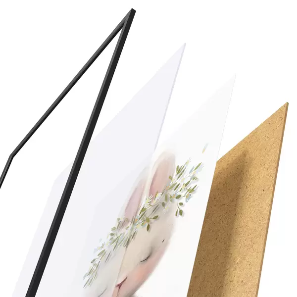 Le poster se compose d'un cadre, d'un plexiglas, d'une image imprimée et d'un support en aggloméré. Le poster peut être immédiatement accroché au mur grâce aux fixations au dos.