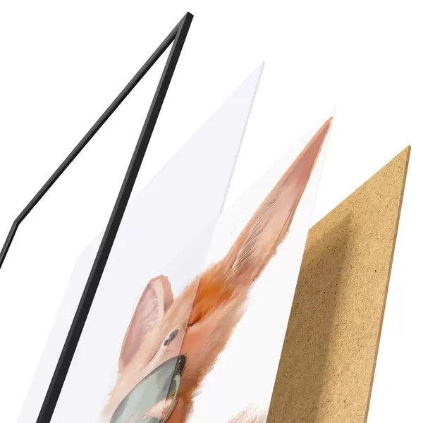 Le poster se compose d'un cadre, d'un plexiglas, d'une image imprimée et d'un support en aggloméré. Le poster peut être immédiatement accroché au mur grâce aux fixations au dos.