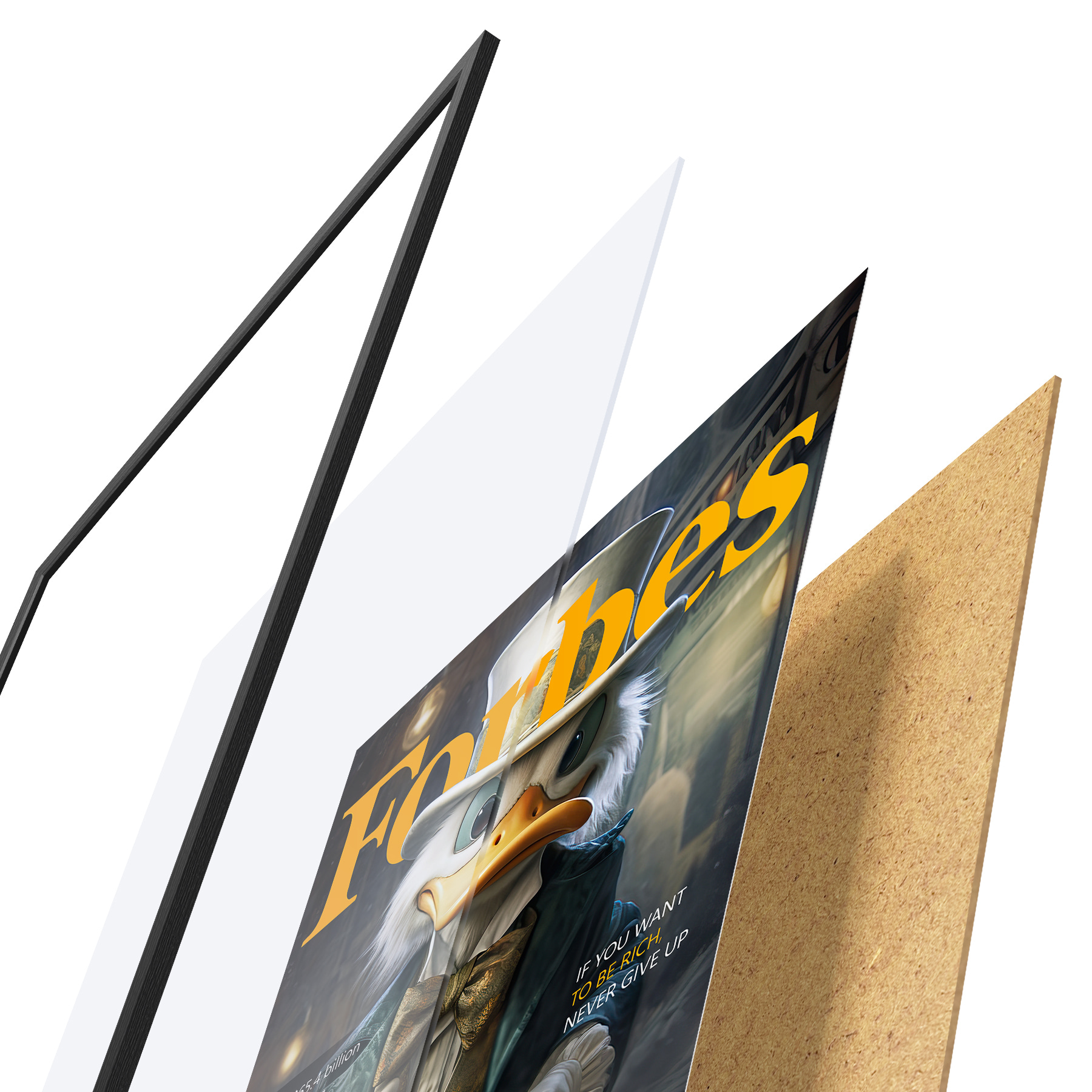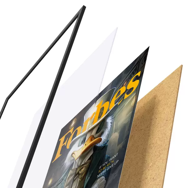 Le poster se compose d'un cadre, d'un plexiglas, d'une image imprimée et d'un support en aggloméré. Le poster peut être immédiatement accroché au mur grâce aux fixations au dos.