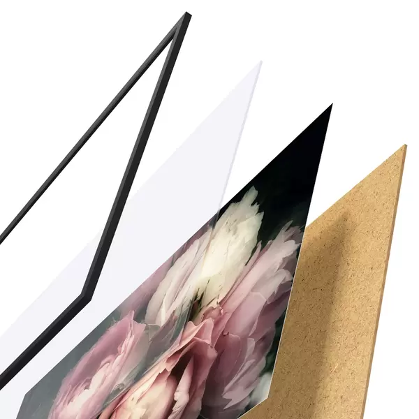 Le poster se compose d'un cadre, d'un plexiglas, d'une image imprimée et d'un support en aggloméré. Le poster peut être immédiatement accroché au mur grâce aux fixations au dos.