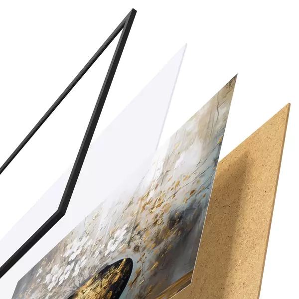 Le poster se compose d'un cadre, d'un plexiglas, d'une image imprimée et d'un support en aggloméré. Le poster peut être immédiatement accroché au mur grâce aux fixations au dos.