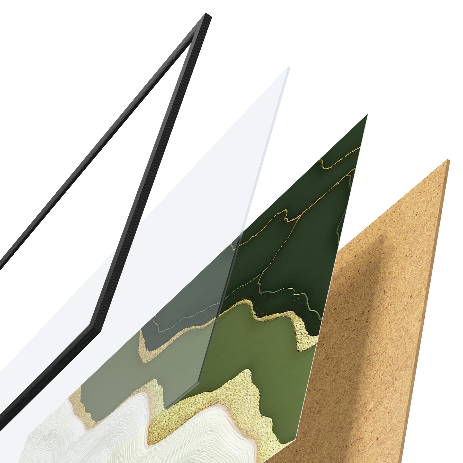 Le poster se compose d'un cadre, d'un plexiglas, d'une image imprimée et d'un support en aggloméré. Le poster peut être immédiatement accroché au mur grâce aux fixations au dos.