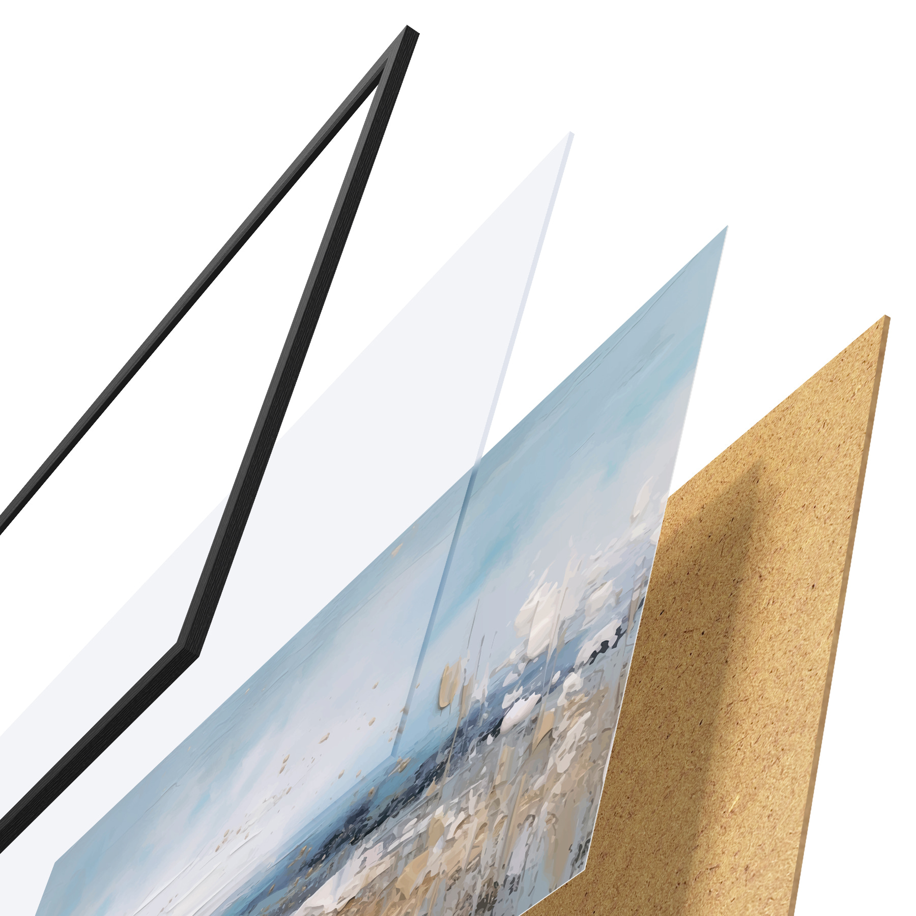 Le poster se compose d'un cadre, d'un plexiglas, d'une image imprimée et d'un support en aggloméré. Le poster peut être immédiatement accroché au mur grâce aux fixations au dos.