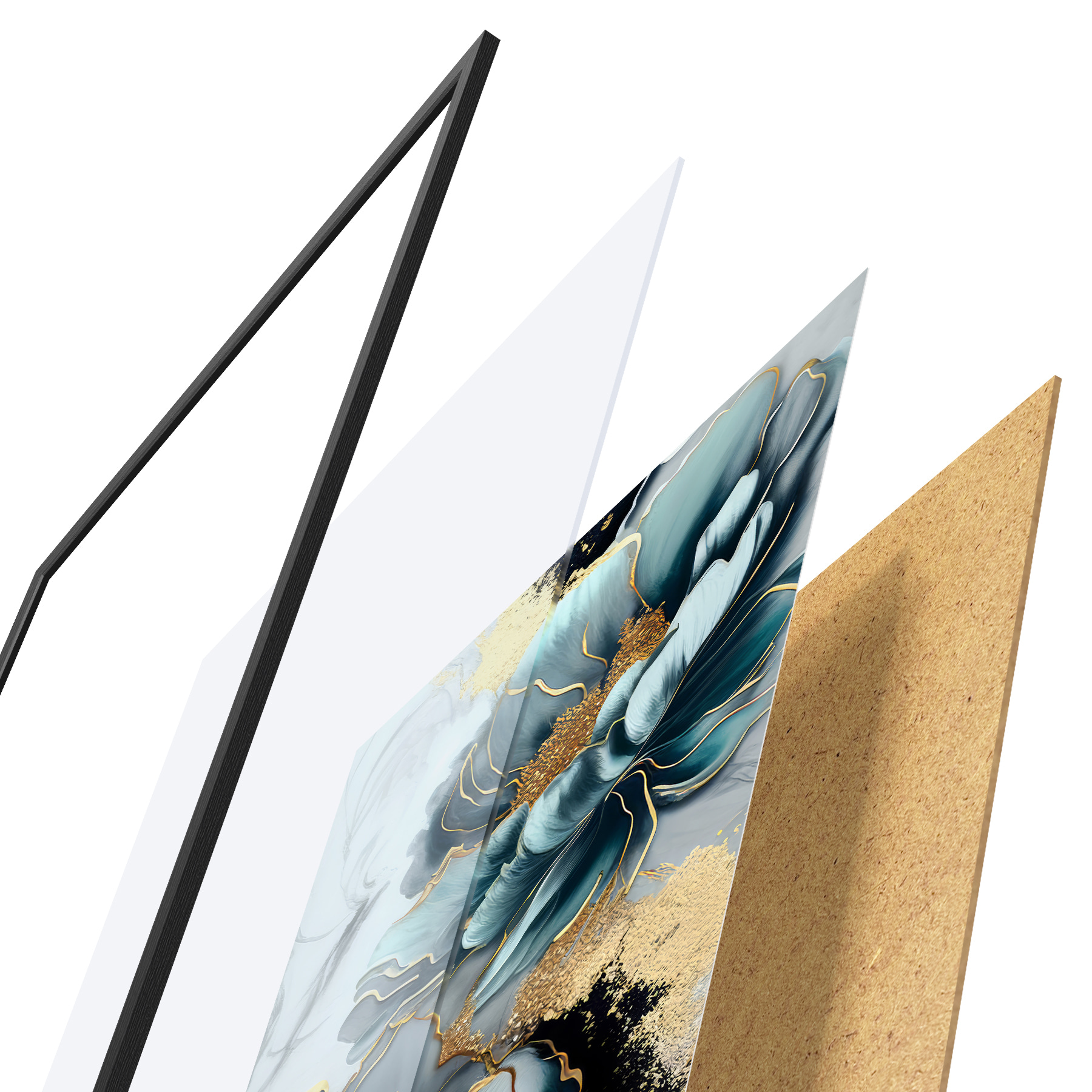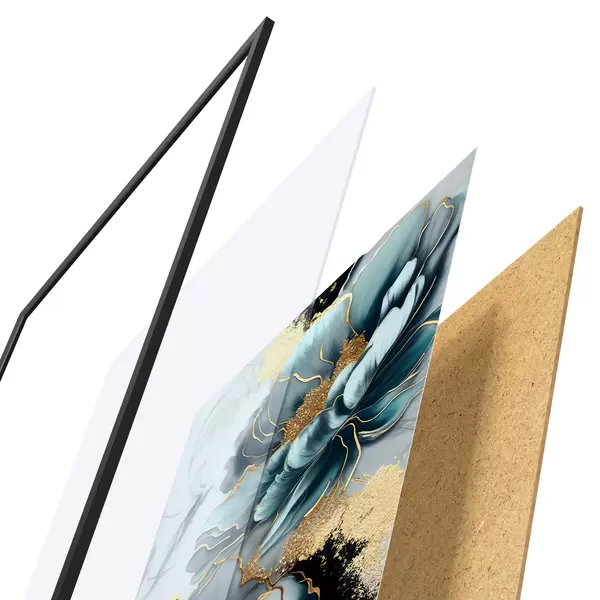 Le poster se compose d'un cadre, d'un plexiglas, d'une image imprimée et d'un support en aggloméré. Le poster peut être immédiatement accroché au mur grâce aux fixations au dos.