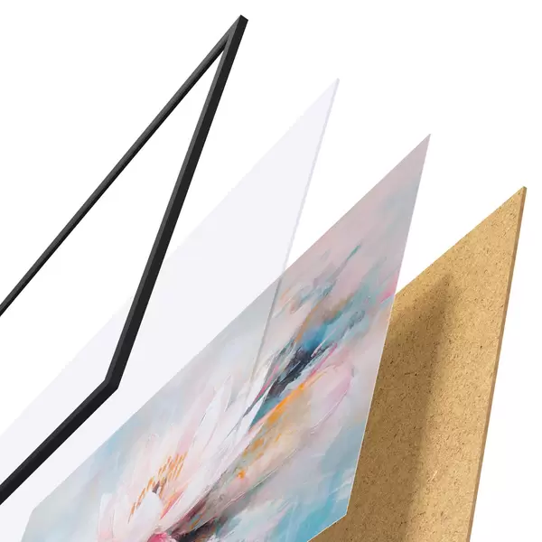 Le poster se compose d'un cadre, d'un plexiglas, d'une image imprimée et d'un support en aggloméré. Le poster peut être immédiatement accroché au mur grâce aux fixations au dos.