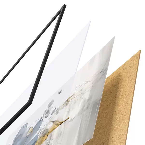 Le poster se compose d'un cadre, d'un plexiglas, d'une image imprimée et d'un support en aggloméré. Le poster peut être immédiatement accroché au mur grâce aux fixations au dos.