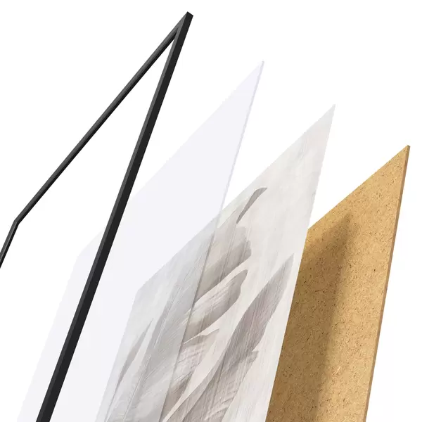 Le poster se compose d'un cadre, d'un plexiglas, d'une image imprimée et d'un support en aggloméré. Le poster peut être immédiatement accroché au mur grâce aux fixations au dos.