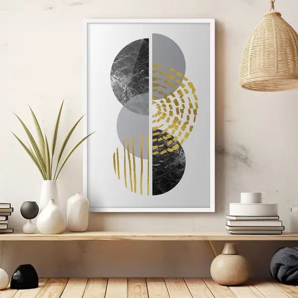 Affiche Graphisme mural abstrait dans les tons blanc, gris et noir f35942