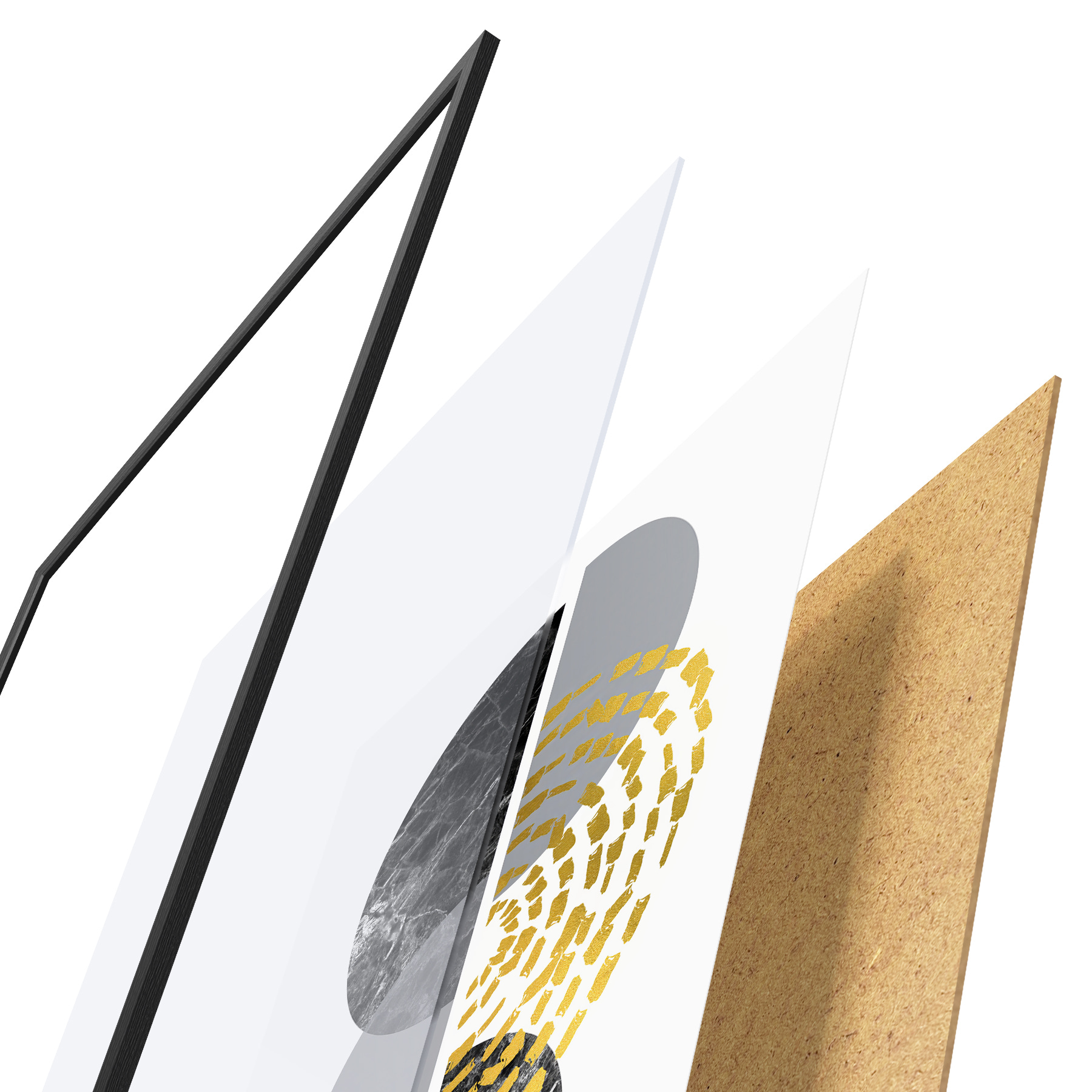 Le poster se compose d'un cadre, d'un plexiglas, d'une image imprimée et d'un support en aggloméré. Le poster peut être immédiatement accroché au mur grâce aux fixations au dos.
