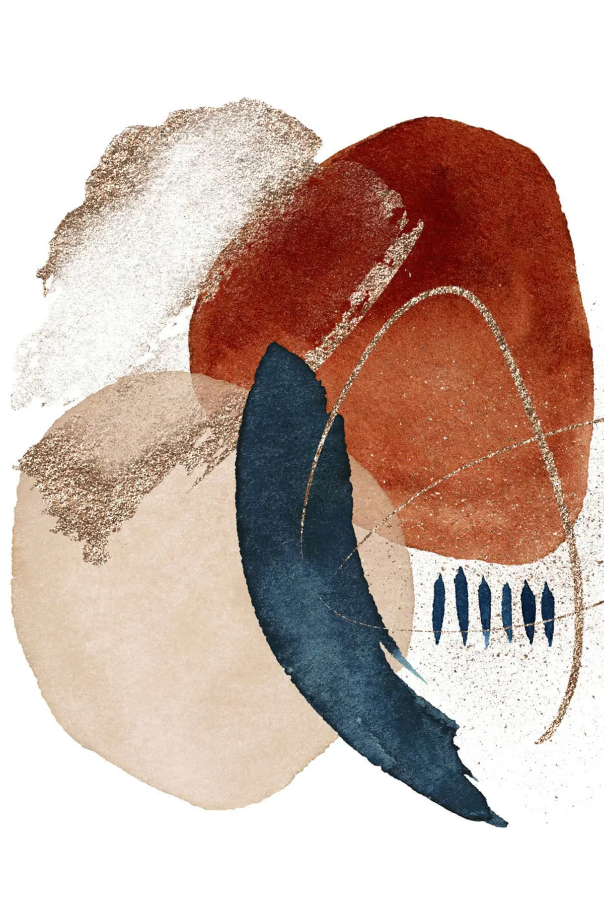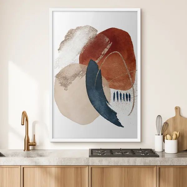 Affiche Motif aquarelle beige et éléments sur fond blanc Non f35954