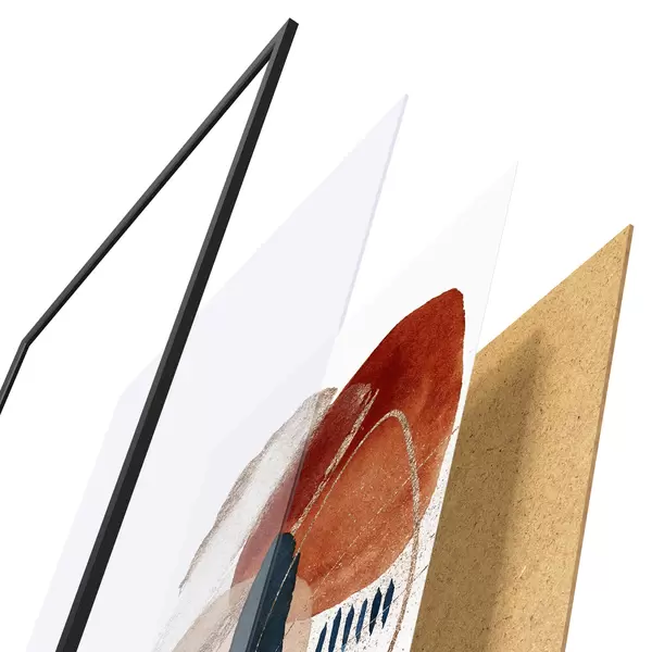 Le poster se compose d'un cadre, d'un plexiglas, d'une image imprimée et d'un support en aggloméré. Le poster peut être immédiatement accroché au mur grâce aux fixations au dos.