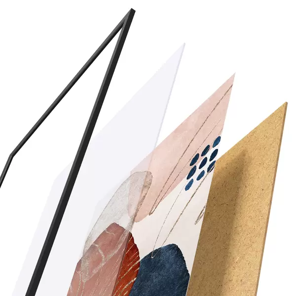 Le poster se compose d'un cadre, d'un plexiglas, d'une image imprimée et d'un support en aggloméré. Le poster peut être immédiatement accroché au mur grâce aux fixations au dos.