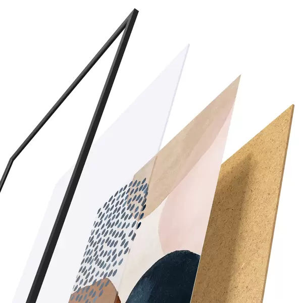 Le poster se compose d'un cadre, d'un plexiglas, d'une image imprimée et d'un support en aggloméré. Le poster peut être immédiatement accroché au mur grâce aux fixations au dos.