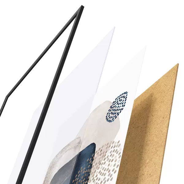 Le poster se compose d'un cadre, d'un plexiglas, d'une image imprimée et d'un support en aggloméré. Le poster peut être immédiatement accroché au mur grâce aux fixations au dos.