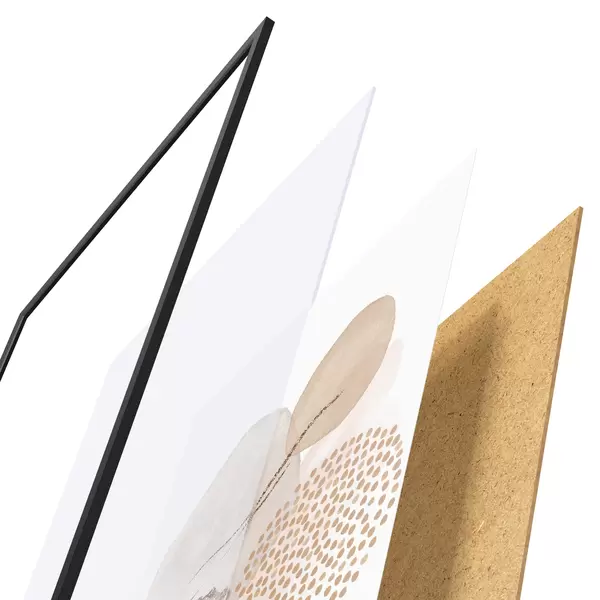 Le poster se compose d'un cadre, d'un plexiglas, d'une image imprimée et d'un support en aggloméré. Le poster peut être immédiatement accroché au mur grâce aux fixations au dos.