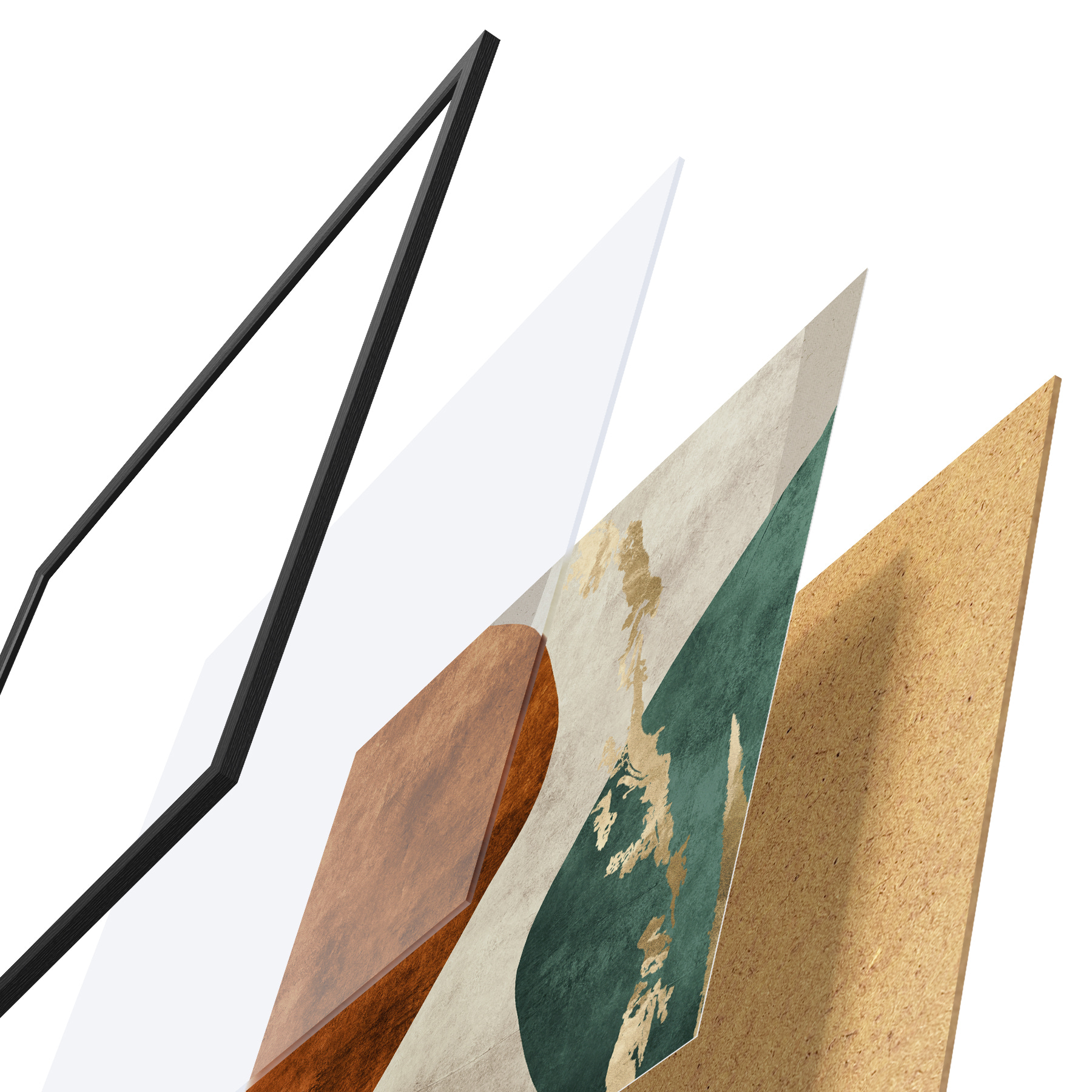 Le poster se compose d'un cadre, d'un plexiglas, d'une image imprimée et d'un support en aggloméré. Le poster peut être immédiatement accroché au mur grâce aux fixations au dos.