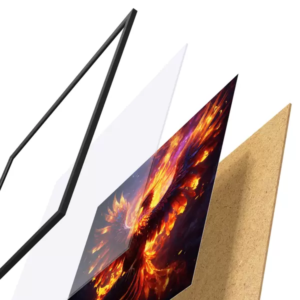Le poster se compose d'un cadre, d'un plexiglas, d'une image imprimée et d'un support en aggloméré. Le poster peut être immédiatement accroché au mur grâce aux fixations au dos.