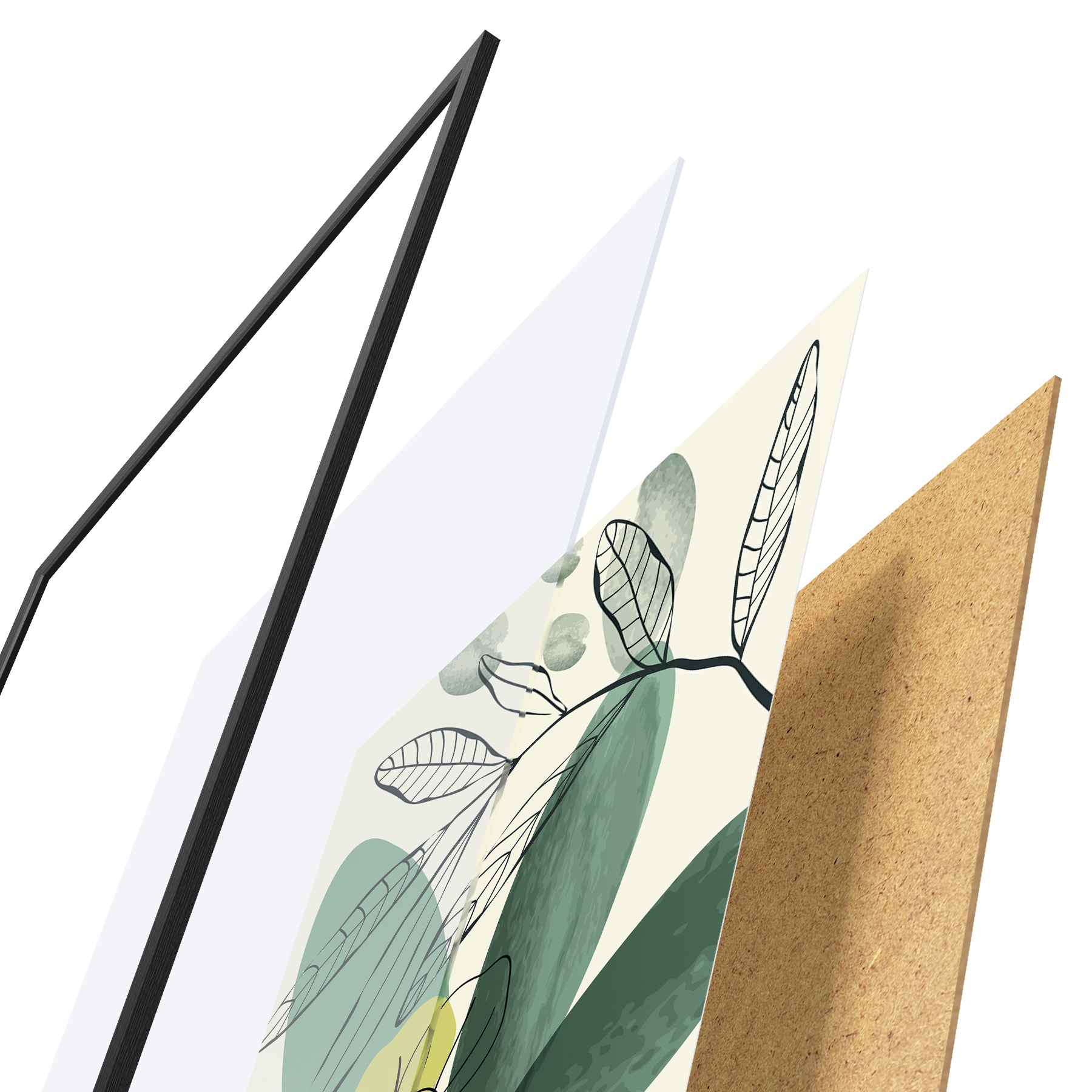Le poster se compose d'un cadre, d'un plexiglas, d'une image imprimée et d'un support en aggloméré. Le poster peut être immédiatement accroché au mur grâce aux fixations au dos.