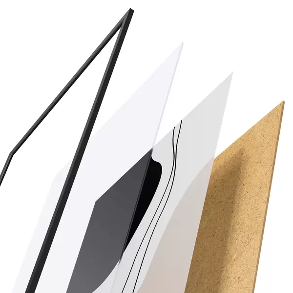 Le poster se compose d'un cadre, d'un plexiglas, d'une image imprimée et d'un support en aggloméré. Le poster peut être immédiatement accroché au mur grâce aux fixations au dos.
