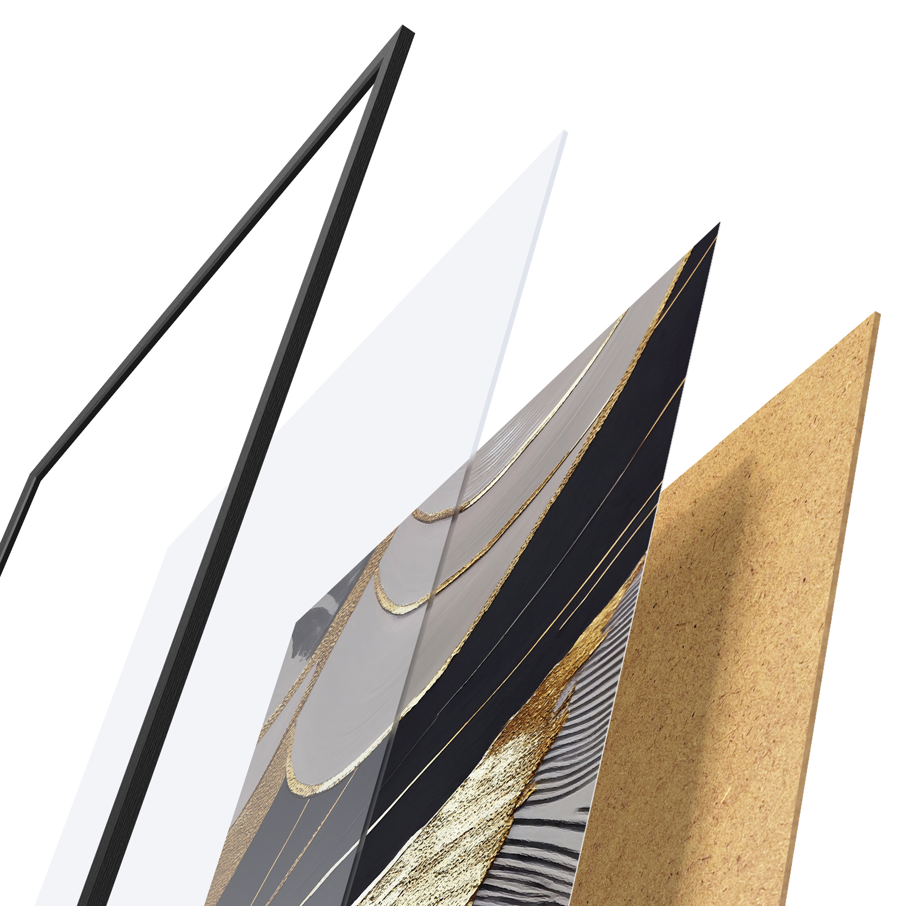 Le poster se compose d'un cadre, d'un plexiglas, d'une image imprimée et d'un support en aggloméré. Le poster peut être immédiatement accroché au mur grâce aux fixations au dos.