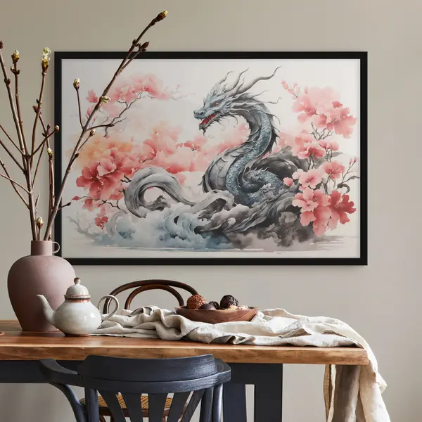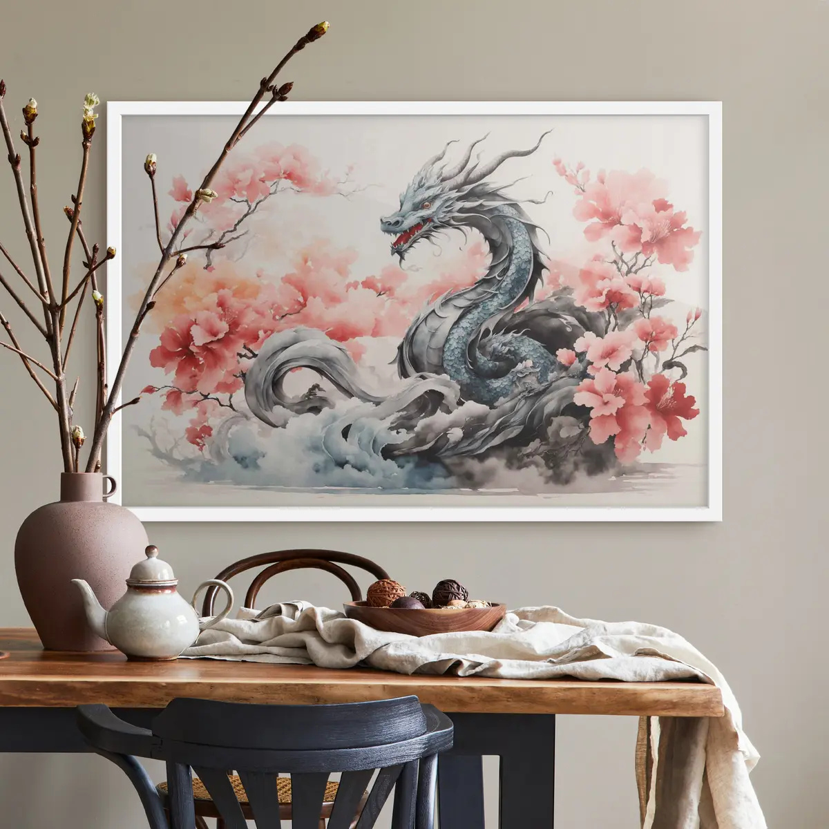 Affiche Majestueux dragon parmi les fleurs épanouies f36239