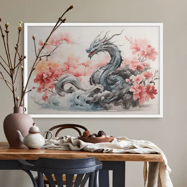 Affiche Majestueux dragon parmi les fleurs épanouies Non f36239